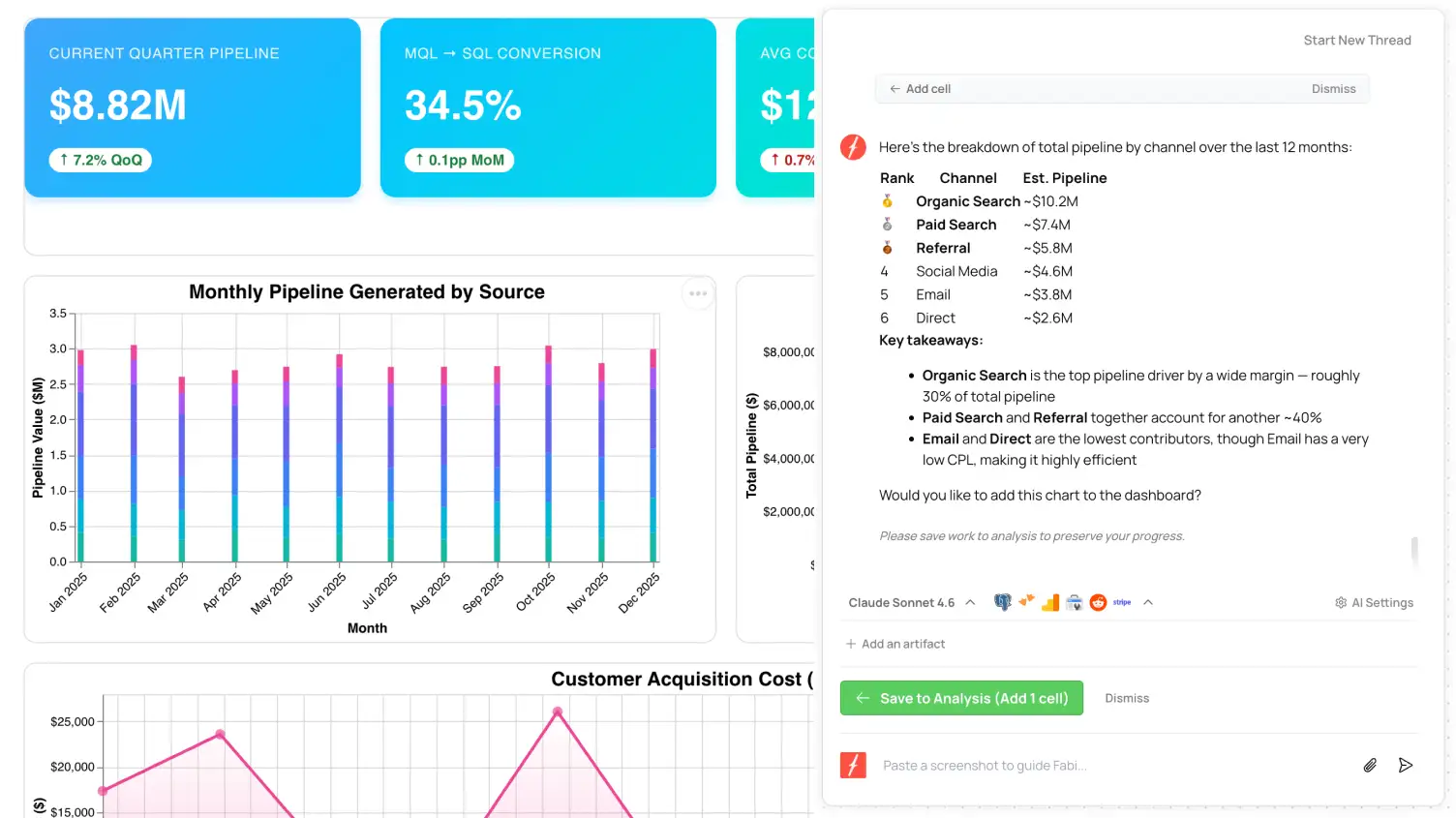 Fabi.ai brings the entire workflow together in one, simple and intuitive platform. It’s the perfect complement to existing BI.