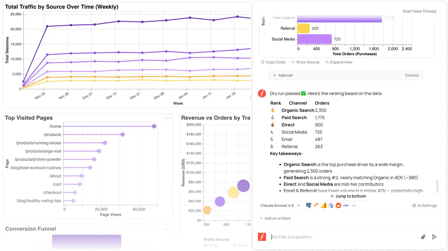 Fabi.ai brings the entire workflow together in one, simple and intuitive platform. It’s the perfect complement to existing BI.