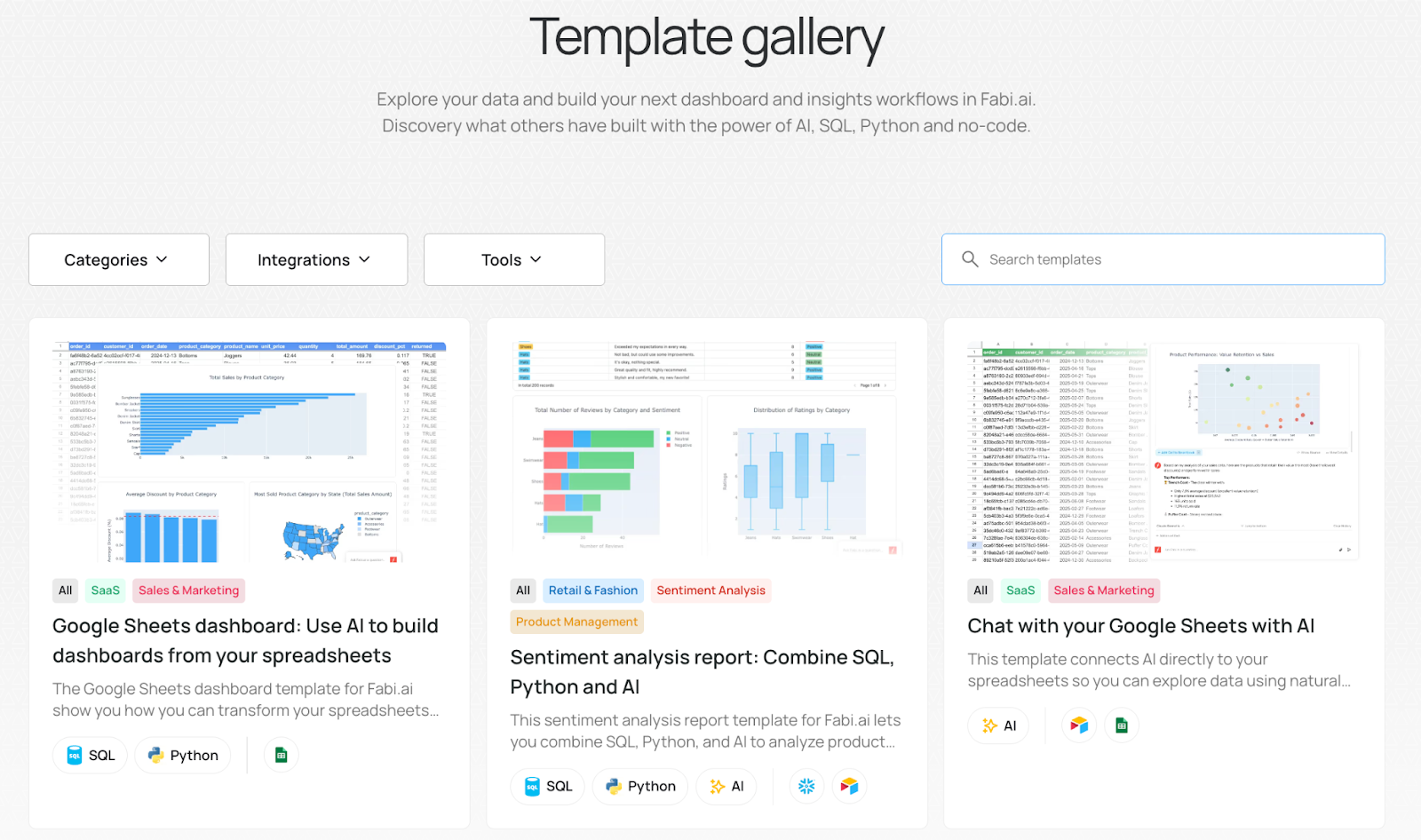 We’ve published a template gallery to help inspire you. Click on any template to see the details and try it out for yourself in Fabi.