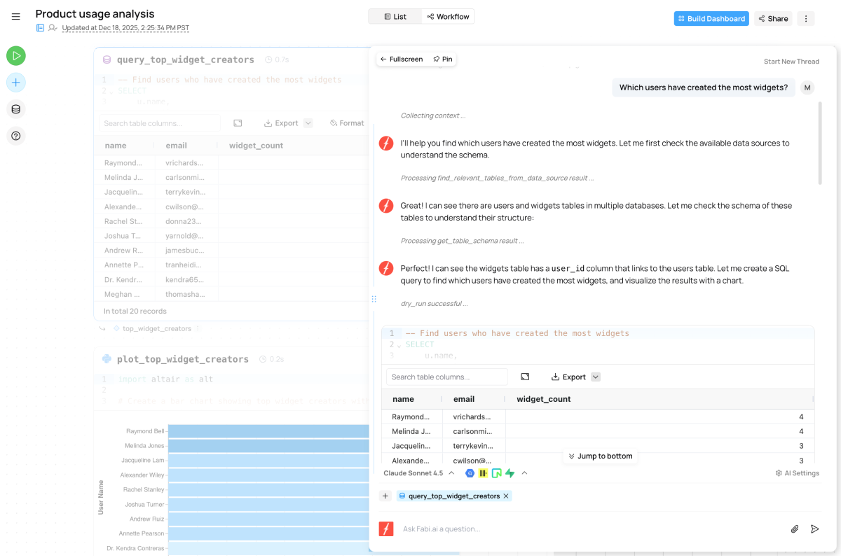 Absolutely. Although Fabi's Analyst Agent provides the underlying SQL and Python code, the AI is robust enough to empower non-technical individuals to build their own dashboards and workflows.