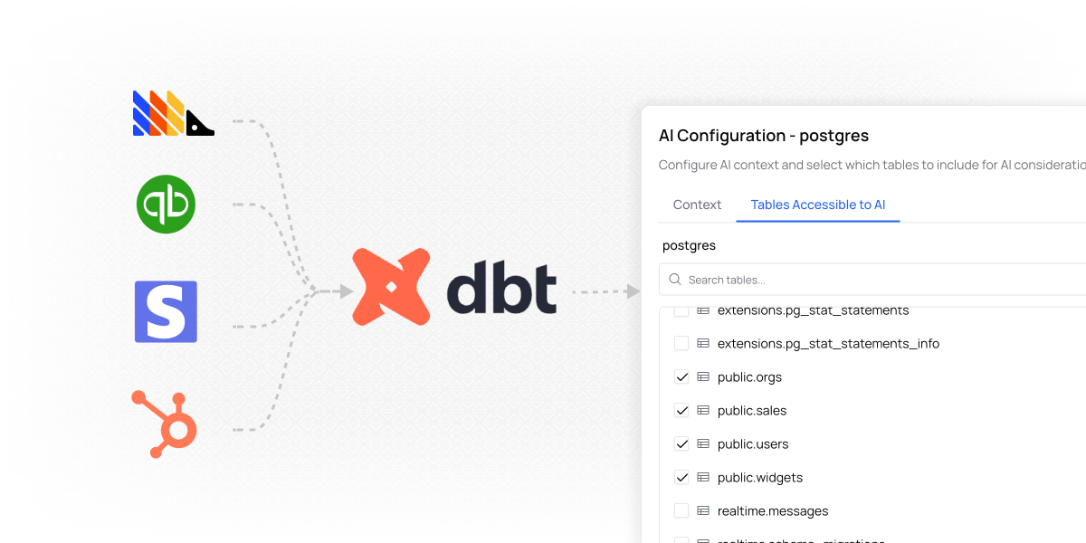 Connect Fabi to all your data sources, and start generating insights and dashboards in minute. No coding required.